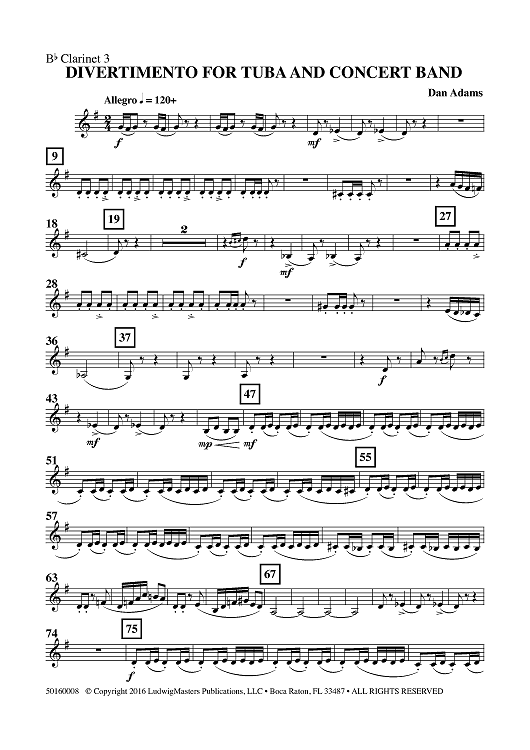 Digital Sheet Music for Divertimento for Tuba and Concert Band - Clarinet 3 in Bb by , Dan Adams scored for Concert Band; id:461949