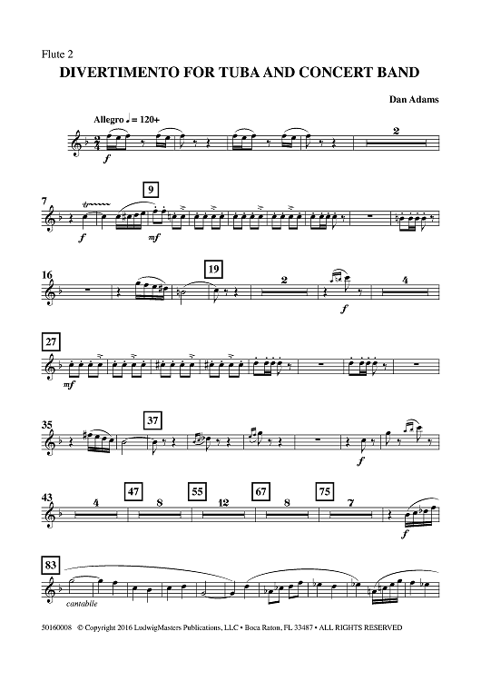 "Divertimento for Tuba and Concert Band - Flute 2" Sheet Music by Dan Adams