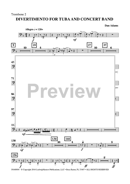 Digital Sheet Music for Divertimento for Tuba and Concert Band - Trombone 2 by , Dan Adams scored for Concert Band; id:461963