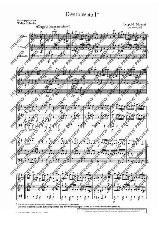"Divertimento I - Score" Sheet Music by Leopold Mozart