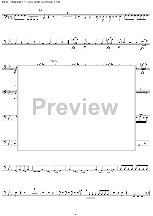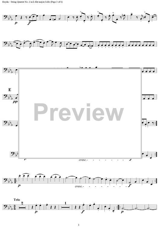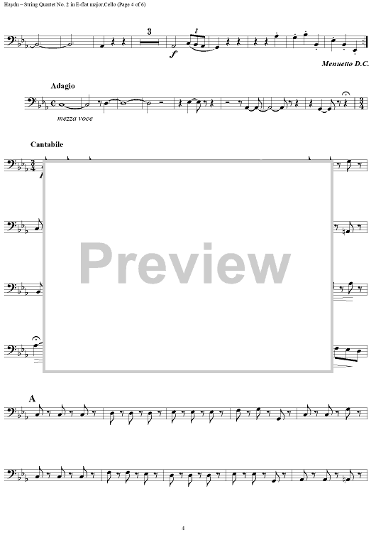 Digital Sheet Music for Divertimento in E-Flat Major, Op. 9, No. 2 - Cello by Franz Joseph Haydn scored for String Quartet; id:277992