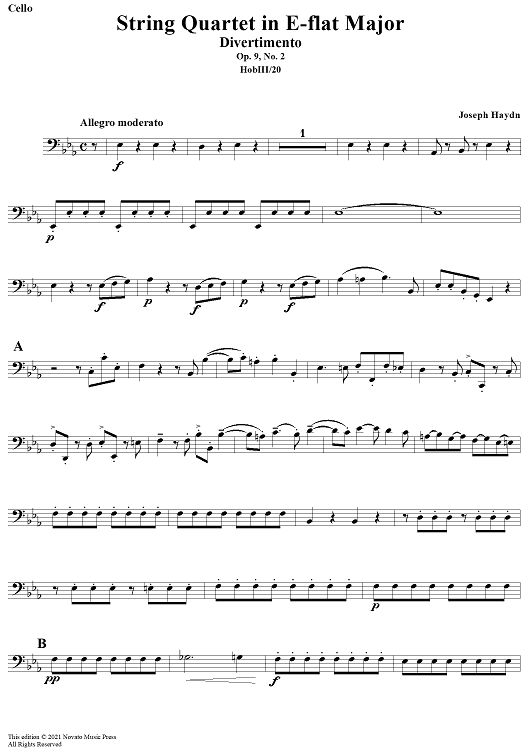 "Divertimento in E-Flat Major, Op. 9, No. 2 - Cello" Sheet Music by Franz Joseph Haydn