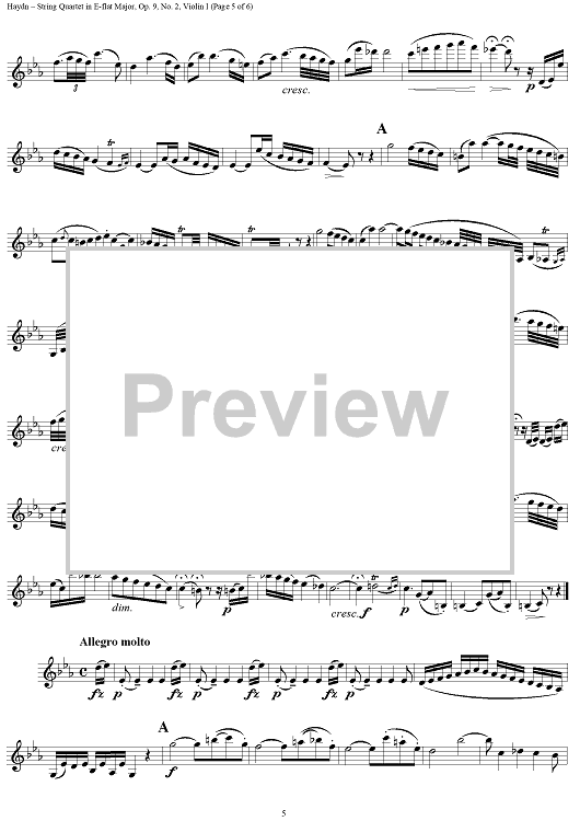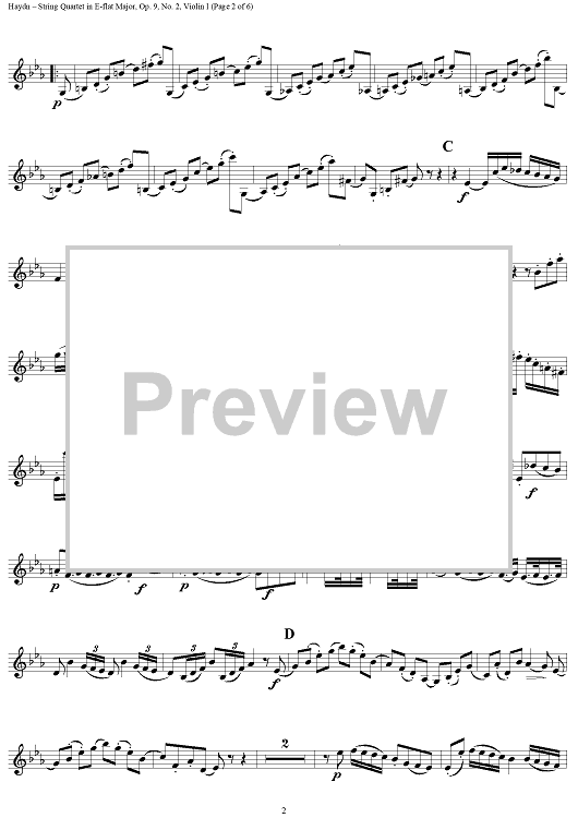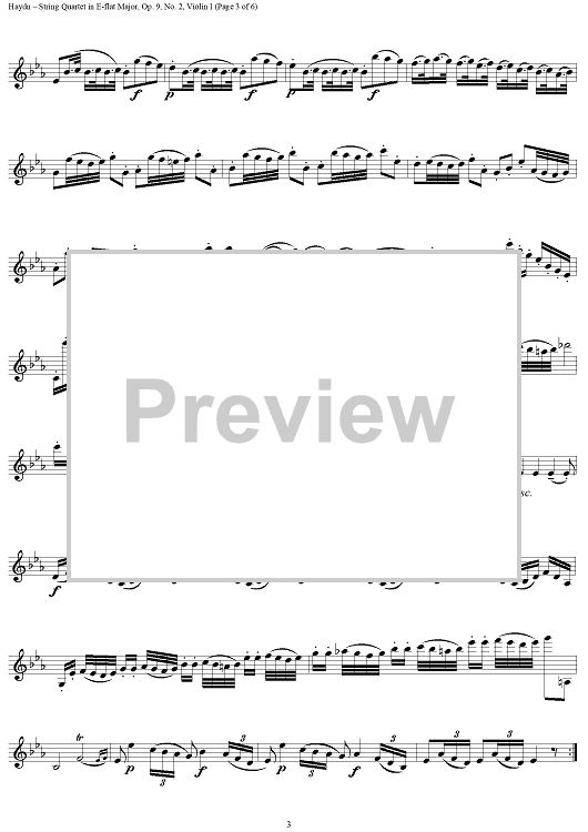 Digital Sheet Music for Divertimento in E-Flat Major, Op. 9, No. 2 - Violin 1 by Franz Joseph Haydn scored for String Quartet; id:118566