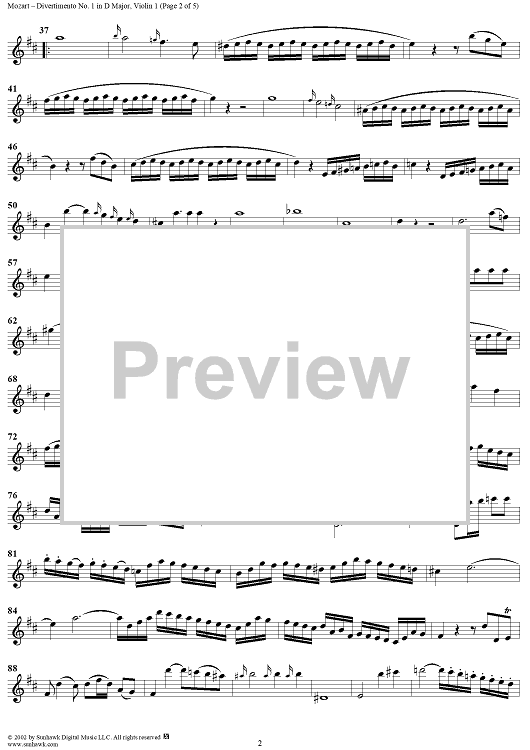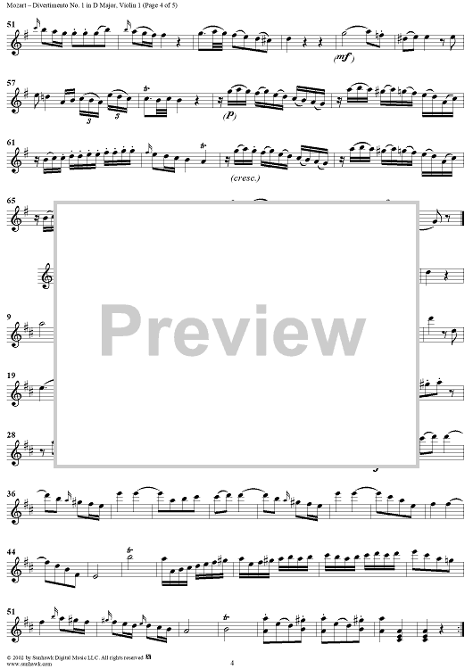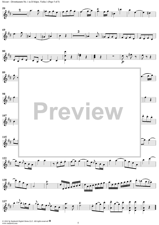 Digital Sheet Music for Divertimento No. 1 in D Major, K136 - Violin 1 by Wolfgang Amadeus Mozart scored for String Quartet; id:253041
