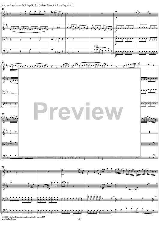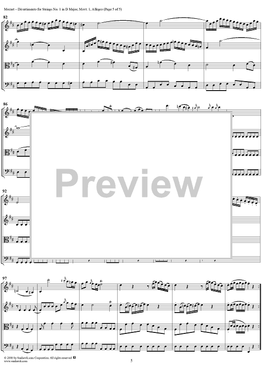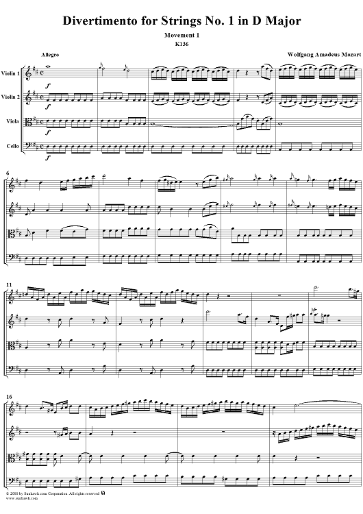 Digital Sheet Music for Divertimento No. 1, Movement 1 - Score by Wolfgang Amadeus Mozart scored for String Quartet; id:240833