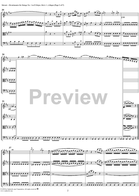 "Divertimento No. 1, Movement 1 - Score" Sheet Music by Wolfgang Amadeus Mozart