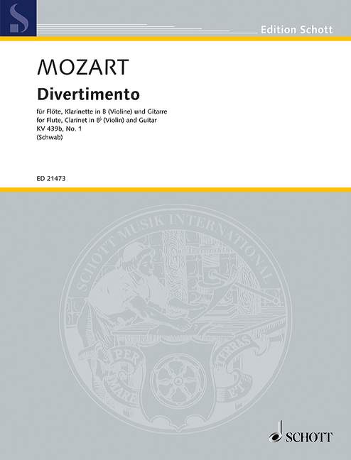Even in the days of Mozart, musicians liked to experiment with instrumental orchestration. Siegfried Schwab used this approach to arrange the popular Mozart trio, consisting of the movements Allegro - Menuetto - Adagio - Menuetto - Rondo, for chamber music ensemble. The bass part has been converted into a guitar part; that way the arrangement is accessible to all guitarists interested in Mozart, whose genius also shows in the Trios KV 439b, but this time through chamber music.