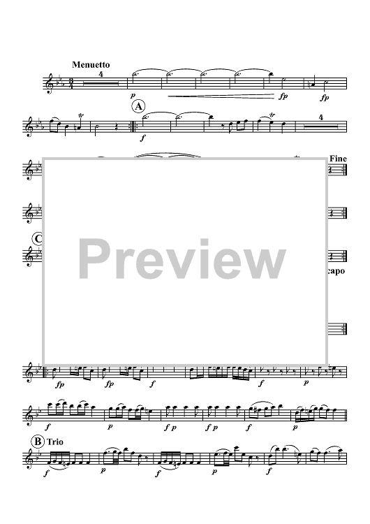 Digital Sheet Music for Divertimento No. 12 in Eb Major, K. 252 - Flute by Wolfgang Amadeus Mozart, John Jay Hilfiger scored for Woodwind Quintet; id:416197