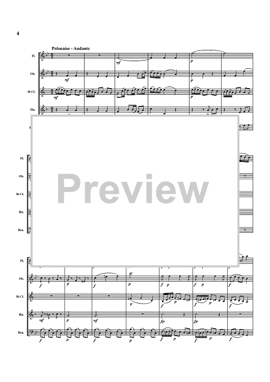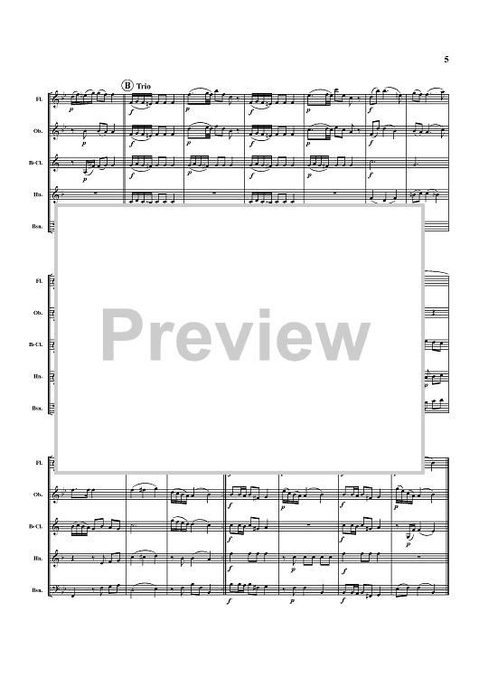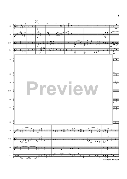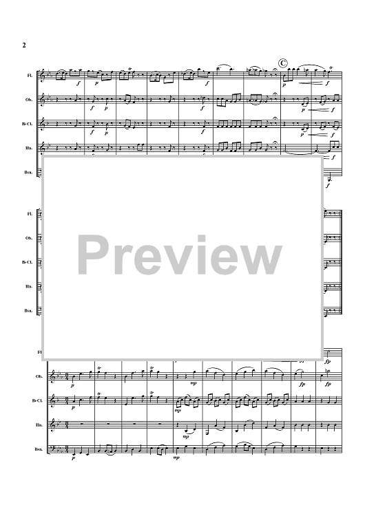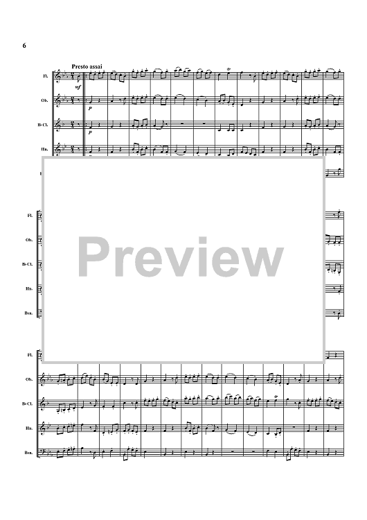Digital Sheet Music for Divertimento No. 12 in Eb Major, K. 252 - Score by Wolfgang Amadeus Mozart, John Jay Hilfiger scored for Woodwind Quintet; id:416196