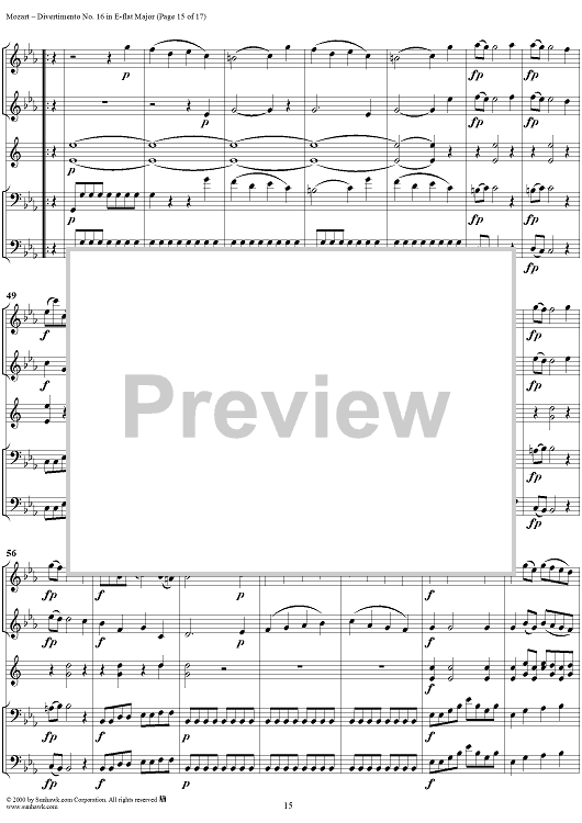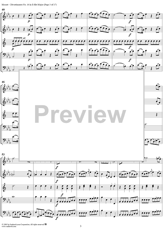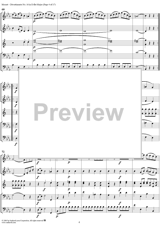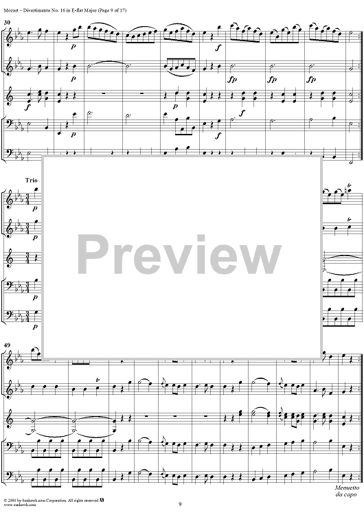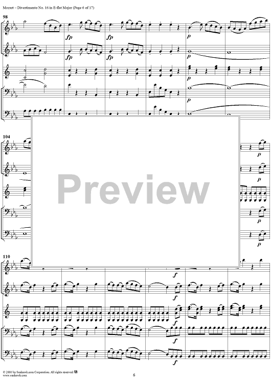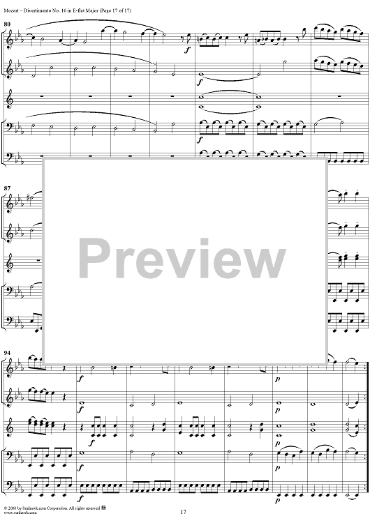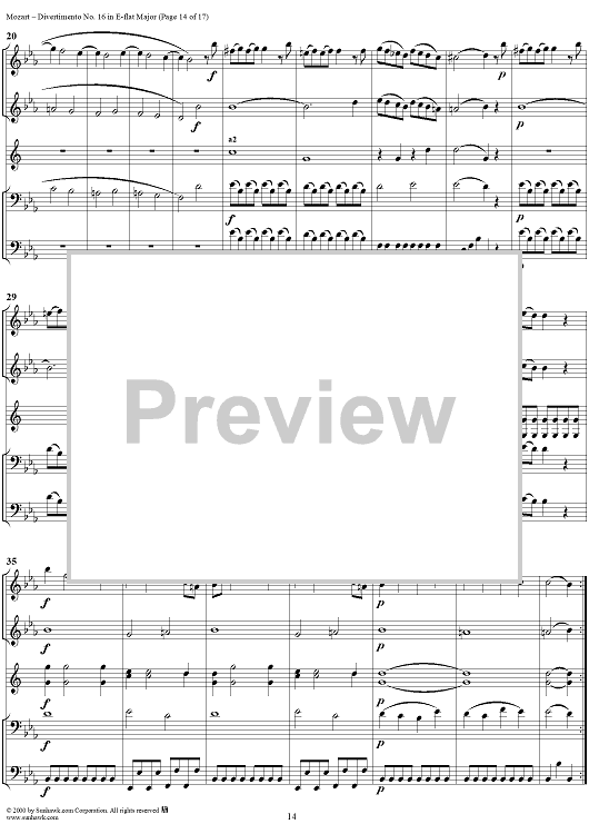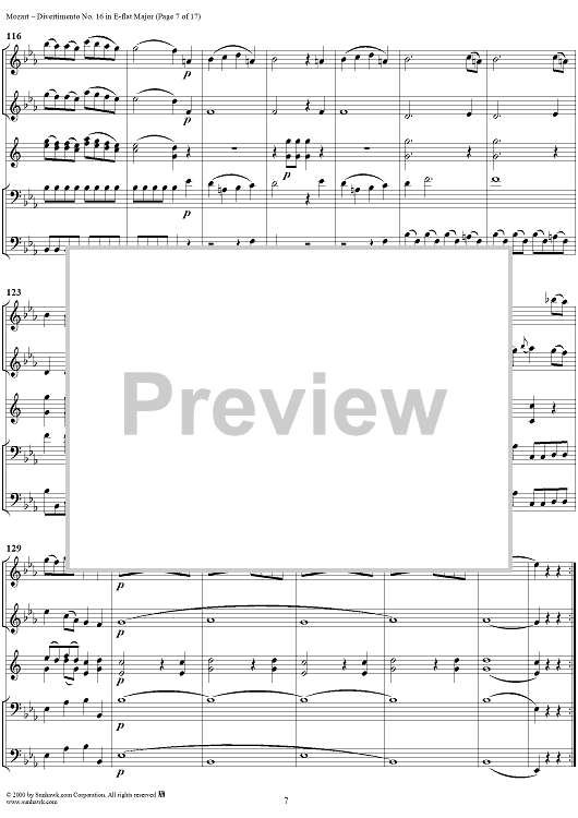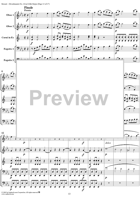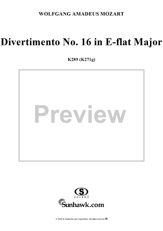 Digital Sheet Music for Divertimento No. 16 in E-Flat Major, K289 (K271g) - Score by Wolfgang Amadeus Mozart scored for 2 Oboes/2 Bassoons/2 Horns; id:235557