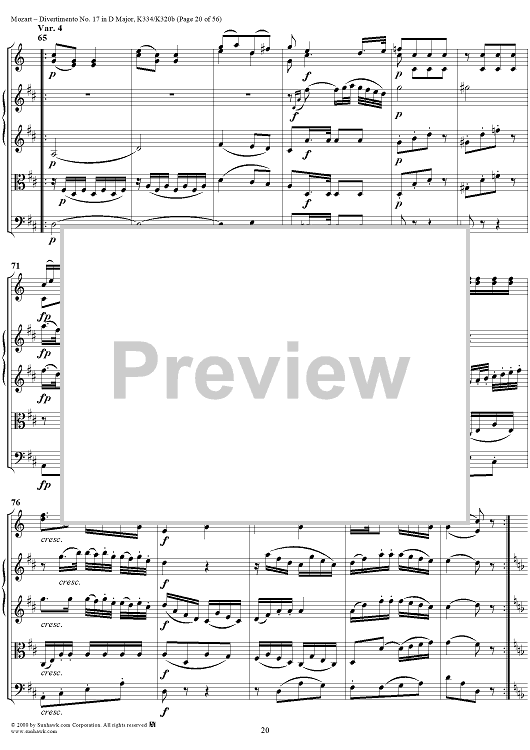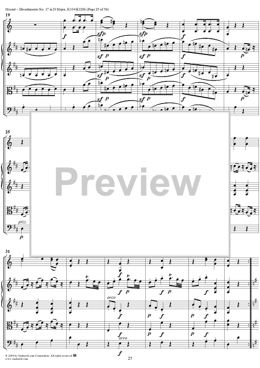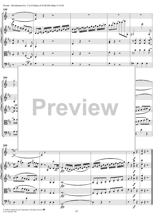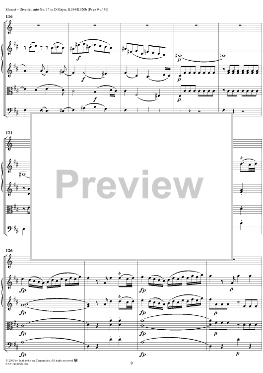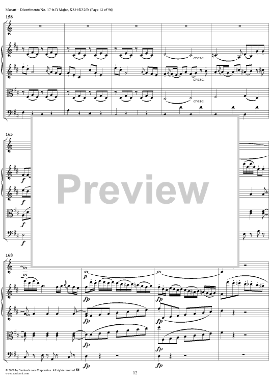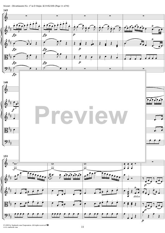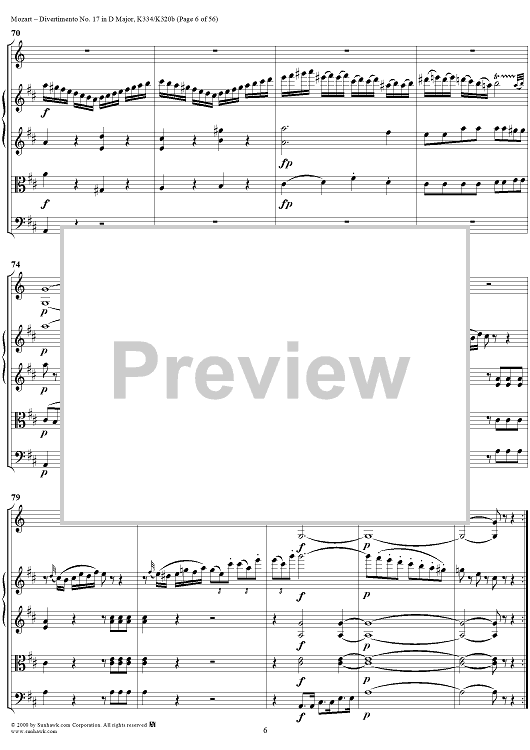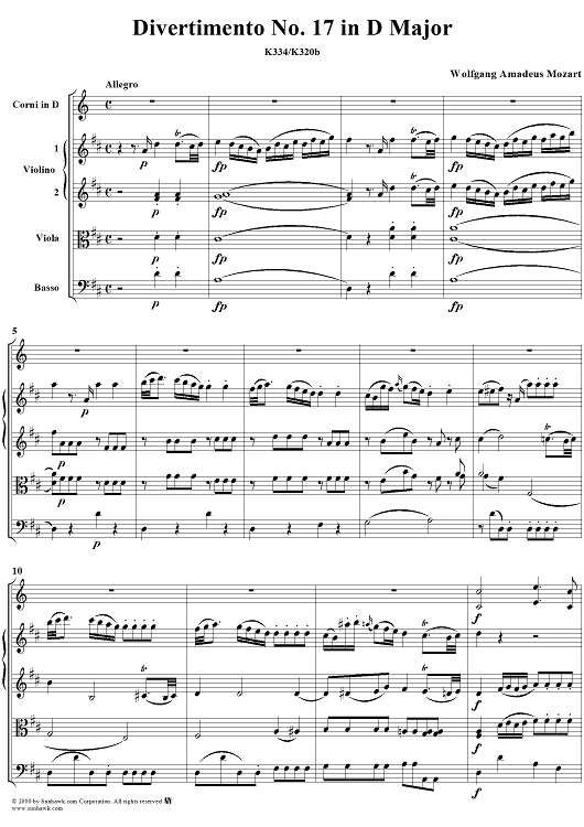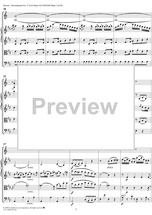 Digital Sheet Music for Divertimento No. 17 in D major, K344 - Full Score by Wolfgang Amadeus Mozart scored for 2 Horns/Strings; id:234588