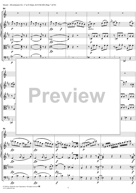 "Divertimento No. 17 in D major, K344 - Full Score" Sheet Music by Wolfgang Amadeus Mozart