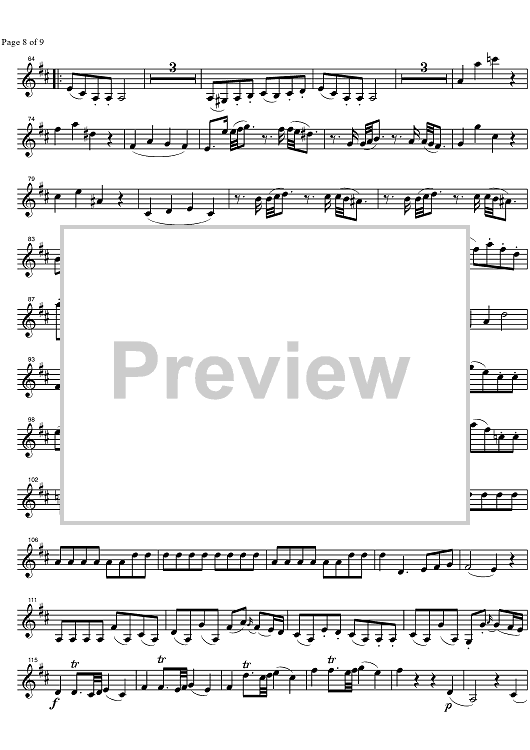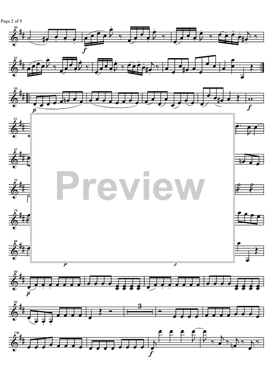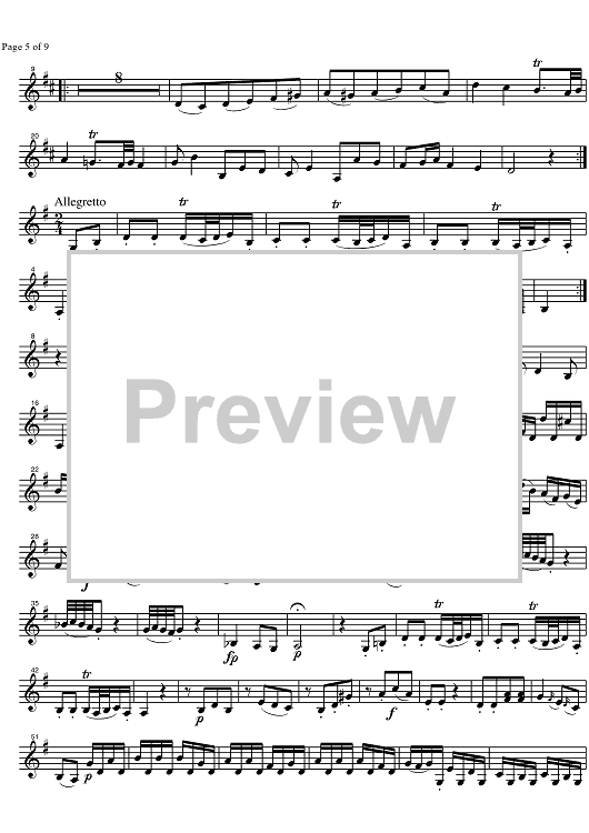 Digital Sheet Music for Divertimento No. 2 D Major KV131 - Violin 2 by Wolfgang Amadeus Mozart scored for Wind and String Ensemble; id:331663