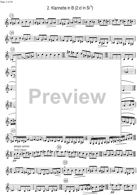 Digital Sheet Music for Divertimento No. 2 Op.93 - B-flat Clarinet 2 by Gion Derungs scored for 4 Clarinets; id:331000