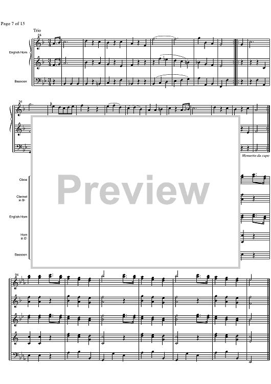 Digital Sheet Music for Divertimento No. 3 Eb Major KV166 - Score by Wolfgang Amadeus Mozart scored for Wind Ensemble; id:331667