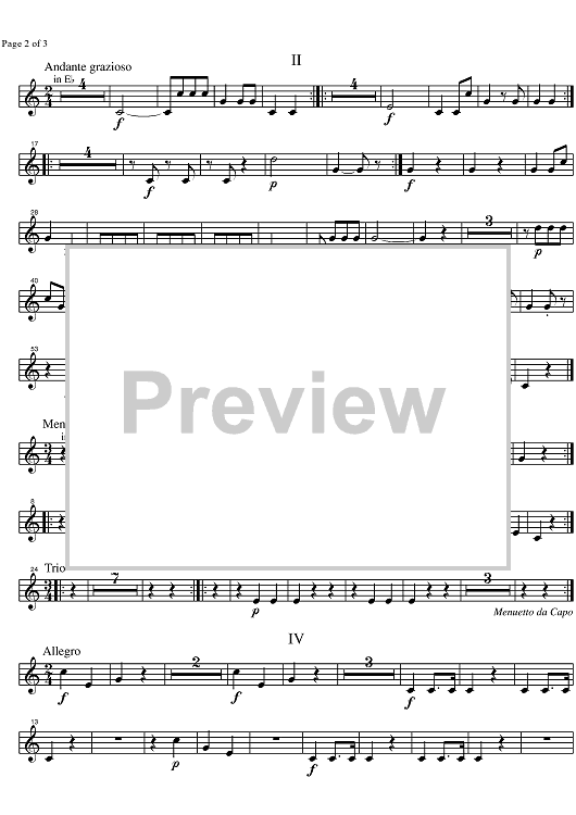 Digital Sheet Music for Divertimento No. 9 Bb Major KV240 - Horn in B-flat 2 by Wolfgang Amadeus Mozart scored for Wind Ensemble; id:329598
