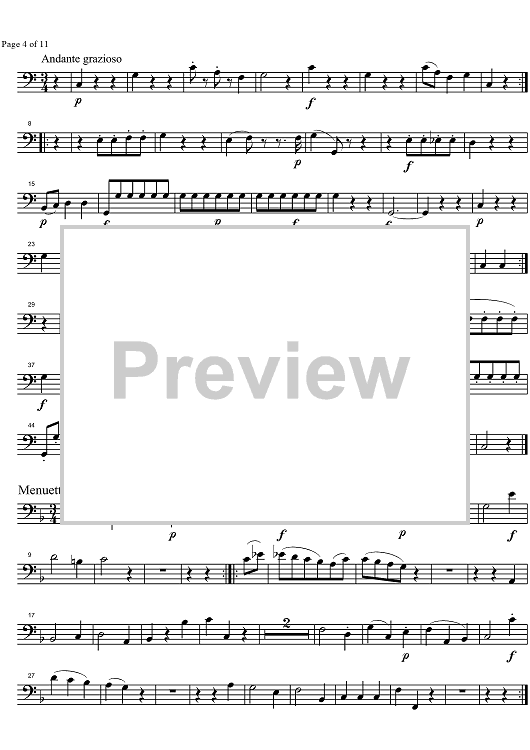 Digital Sheet Music for Divertimento No.10 F Major KV247 - Double Bass by Wolfgang Amadeus Mozart scored for Wind and String Ensemble; id:331722