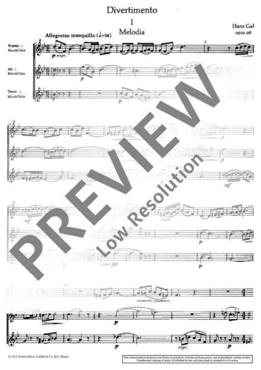 Digital Sheet Music for Divertimento - Performance Score by Hans Gál scored for 3 Recorders (sat); id:482764