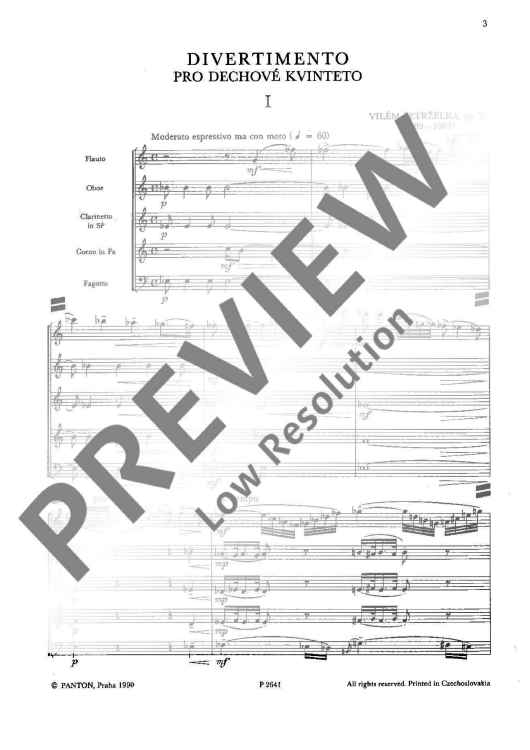 Digital Sheet Music for Divertimento - Score and Parts by Vilém Petrzelka scored for Wind Quintet; id:489551