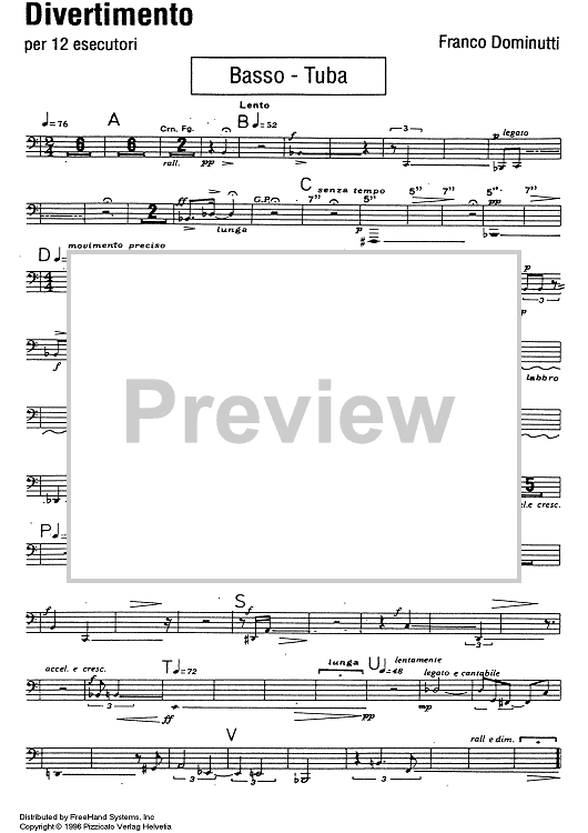 Digital Sheet Music for Divertimento - Tuba by Franco Dominutti scored for Ensemble; id:331012