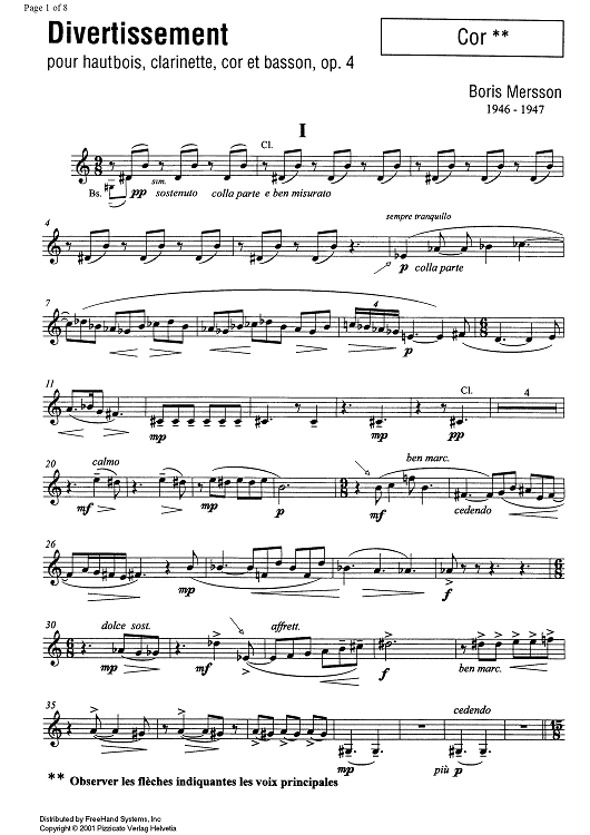 Digital Sheet Music for Divertissement - Horn in F by , Boris Mersson scored for Wind Quartet; id:335493