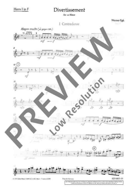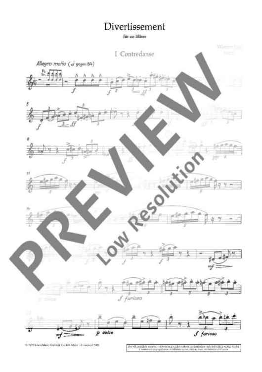 Digital Sheet Music for Divertissement - Set of Parts by Werner Egk scored for Flute (also Piccolo), 2 Oboes, 2 Clarinets (2. Also Bass Clarinet), Trumpet, 2 French Horns And 2 Bassoons (2. Also Contrabassoo; id:473646
