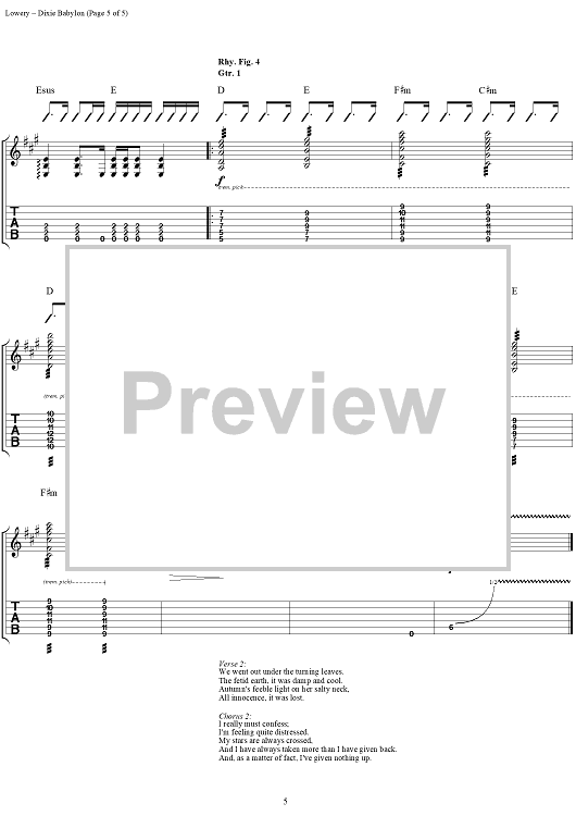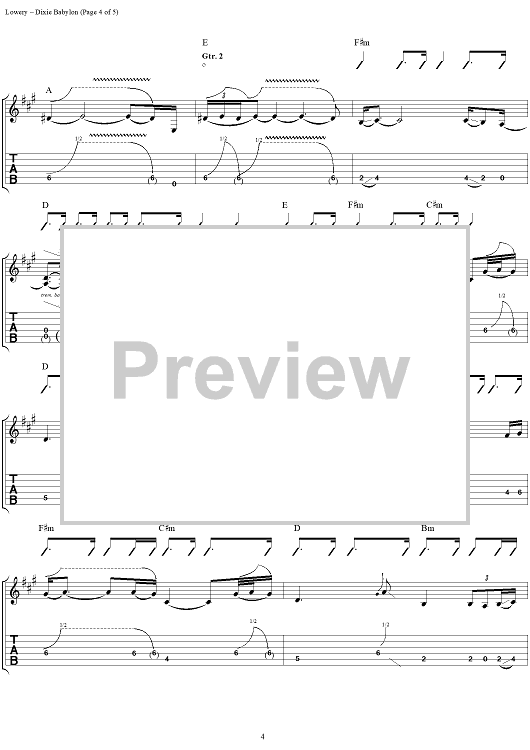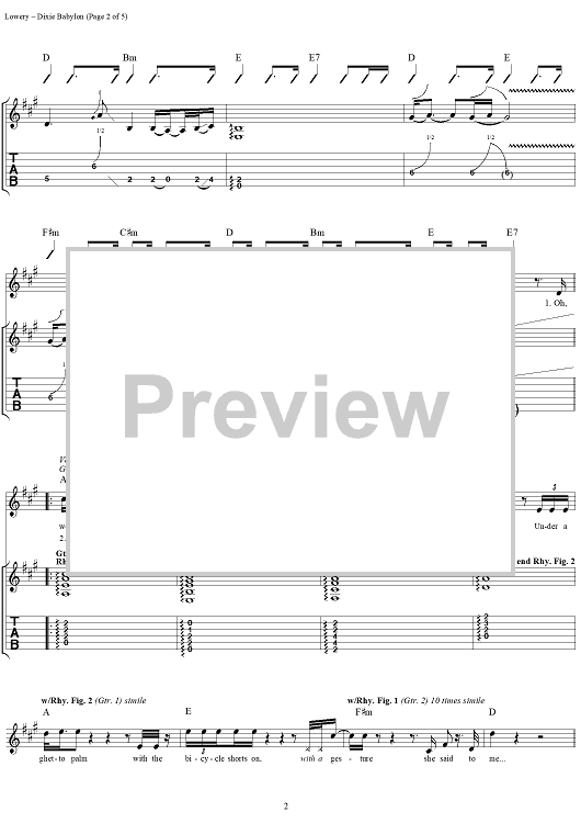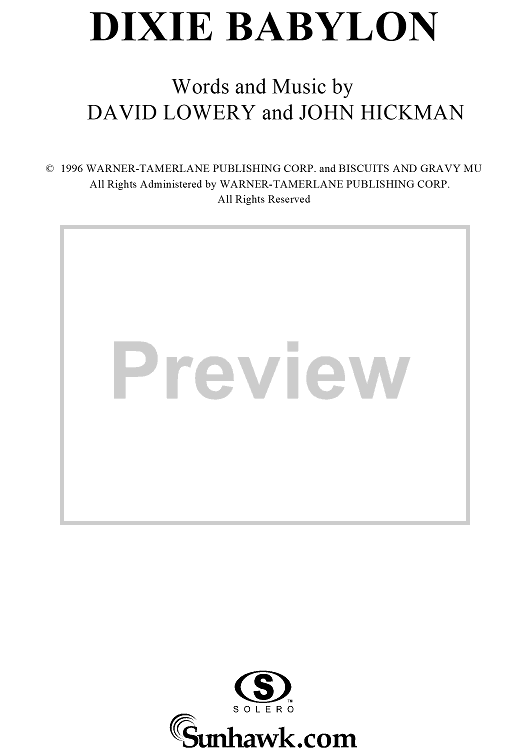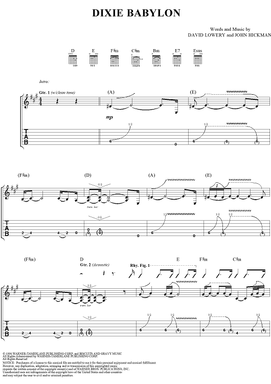 Digital Sheet Music for Dixie Babylon by John Hickman, David Lowery, Cracker scored for Guitar Tab/Vocal; id:113792