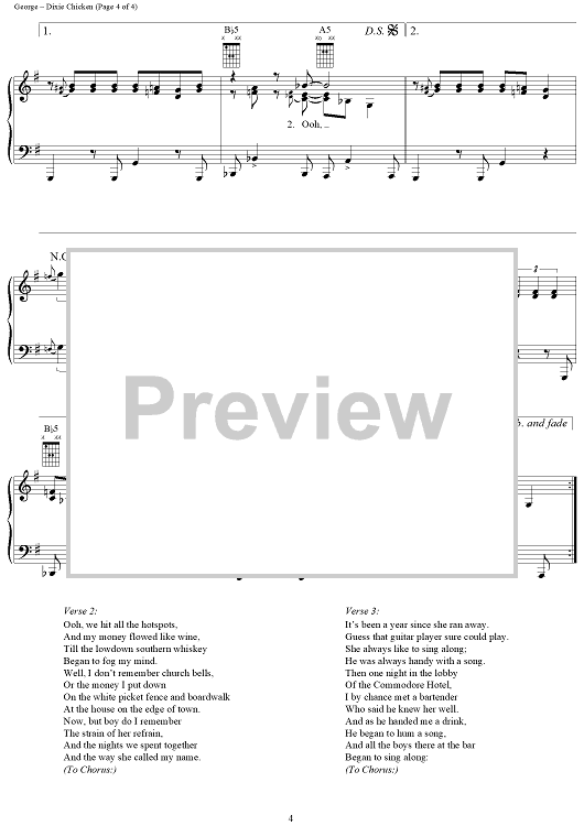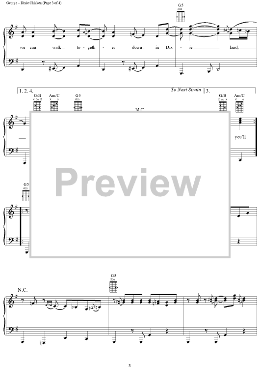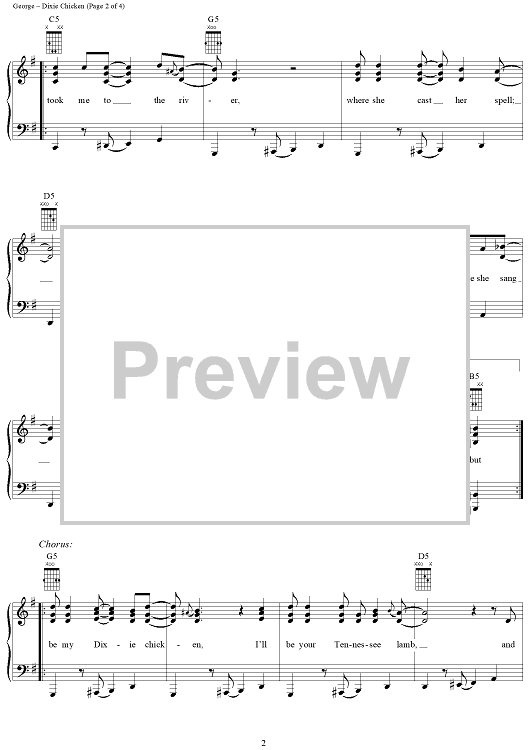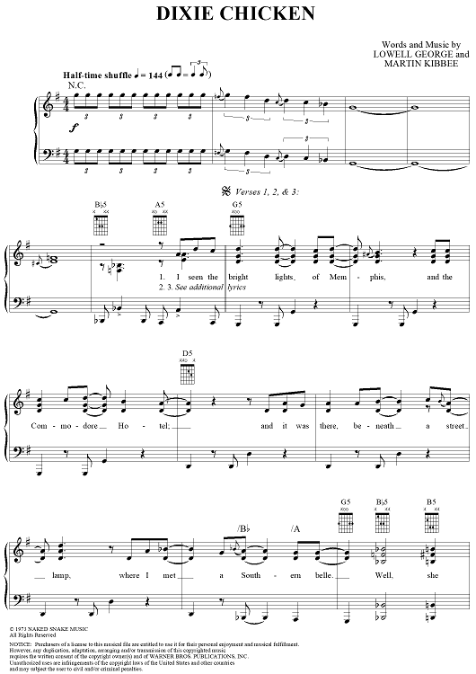 Digital Sheet Music for Dixie Chicken by Garth Brooks, Lowell George, Martin Kibbee scored for Piano/Vocal/Chords; id:268819