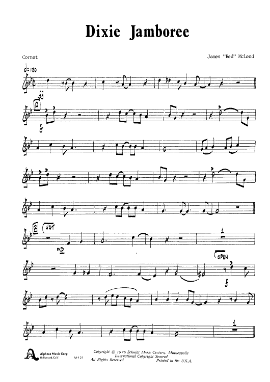 "Dixie Jamboree - Cornet" Sheet Music by James "Red" McLeod