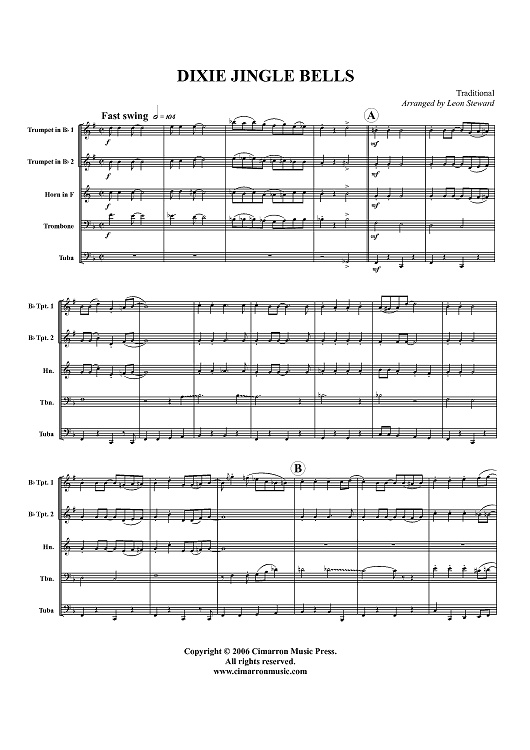 Digital Sheet Music for Dixie Jingle Bells - Score by , Traditional, Leon Steward scored for Brass Quintet; id:359151