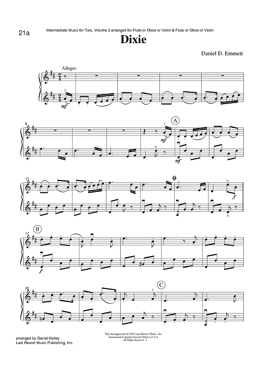 "Dixie" Sheet Music by Daniel Decatur Emmett