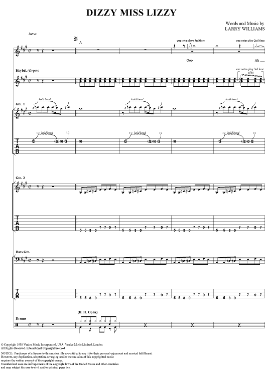 "Dizzy Miss Lizzy" Sheet Music by The Beatles