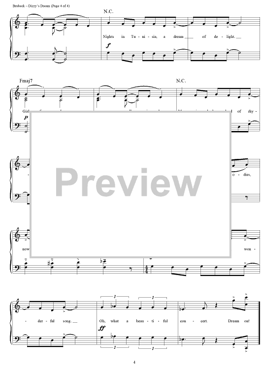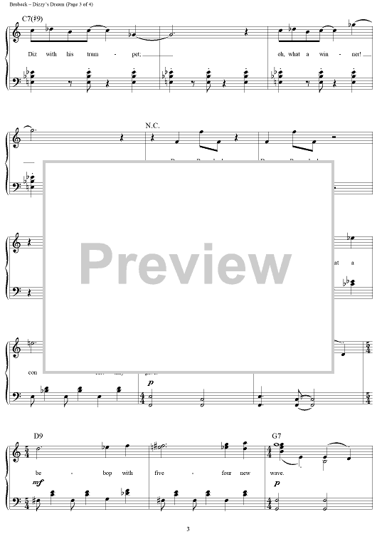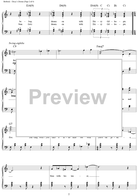 Digital Sheet Music for Dizzy's Dream by Dave Brubeck scored for Piano/Vocal/Chords; id:275725
