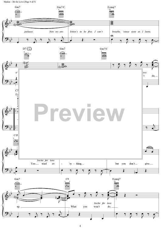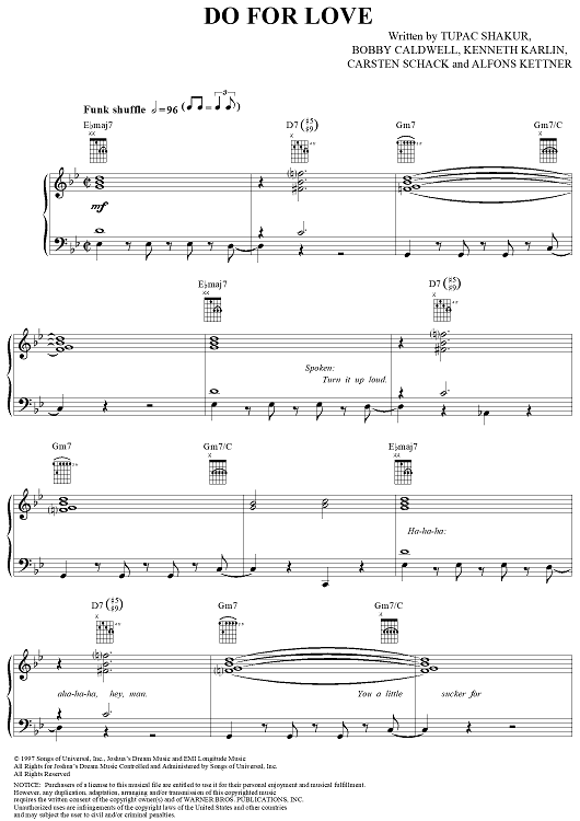 Digital Sheet Music for Do for Love by Carsten Schack, Kenneth Karlin, Bobby Caldwell, Alfons Kettner, 2Pac scored for Piano/Vocal/Chords; id:286726