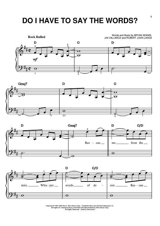 Digital Sheet Music for Do I Have To Say The Words? by Bryan Adams, Robert Lange, Jim Vallance scored for Easy Piano; id:371930