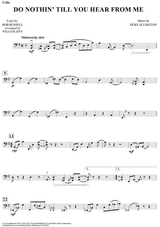 "Do Nothin’ Till You Hear Form Me - Cello" Sheet Music by Duke Ellington