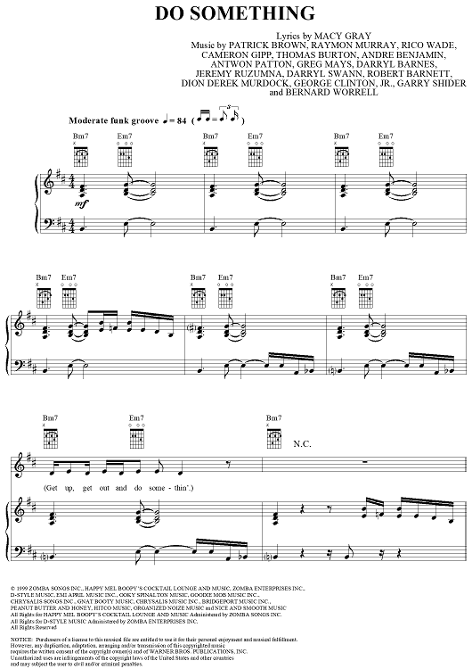 Digital Sheet Music for Do Something by George Clinton, Macy Gray scored for Piano/Vocal/Chords; id:283025