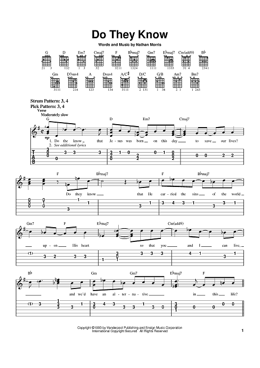 Digital Sheet Music for Do They Know by Boyz II Men, Nathan Morris scored for Easy Guitar; id:369381