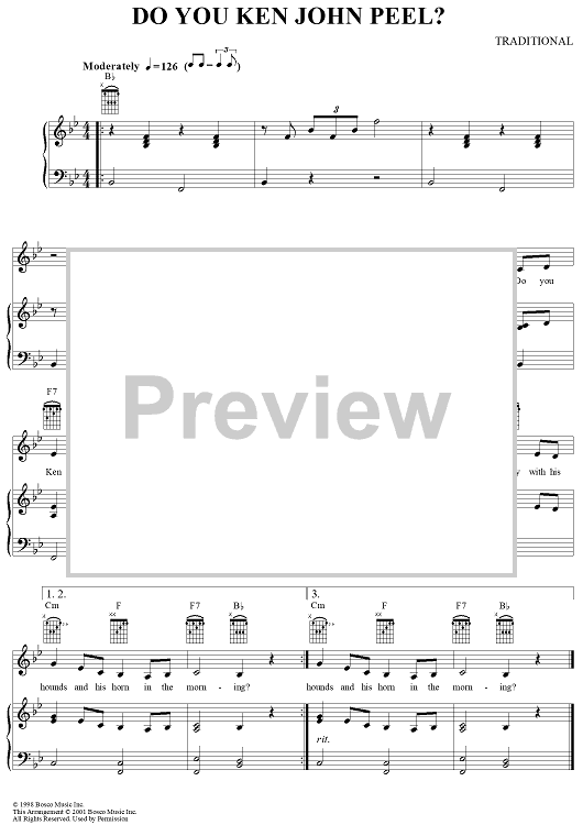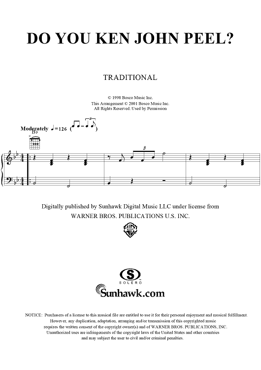 Digital Sheet Music for Do You Ken John Peel? by Traditional scored for Piano/Vocal/Chords; id:289005