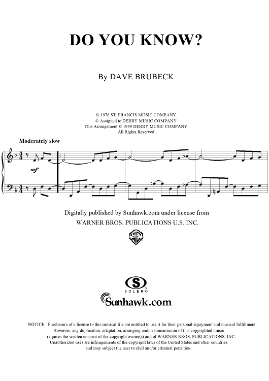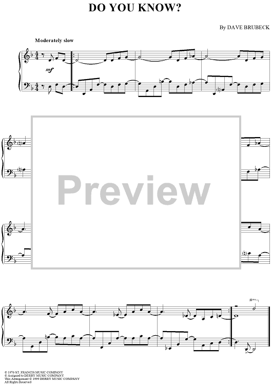 Digital Sheet Music for Do You Know? by Dave Brubeck scored for Piano Solo; id:275796