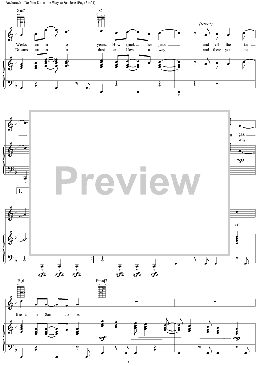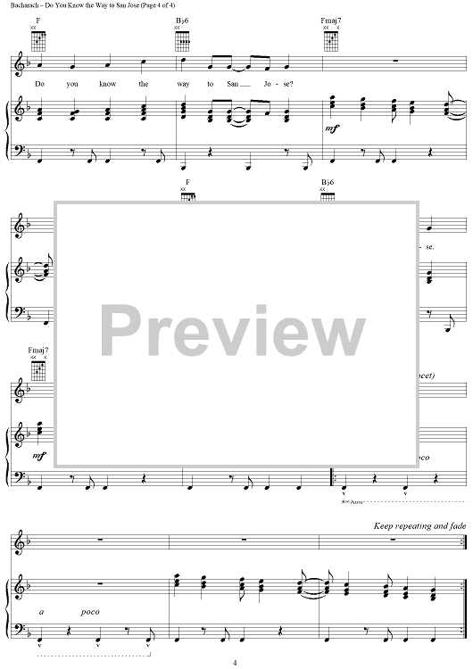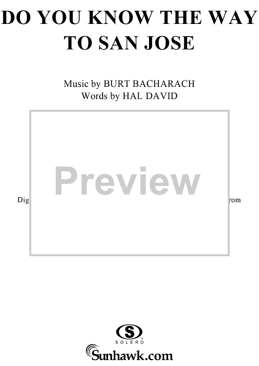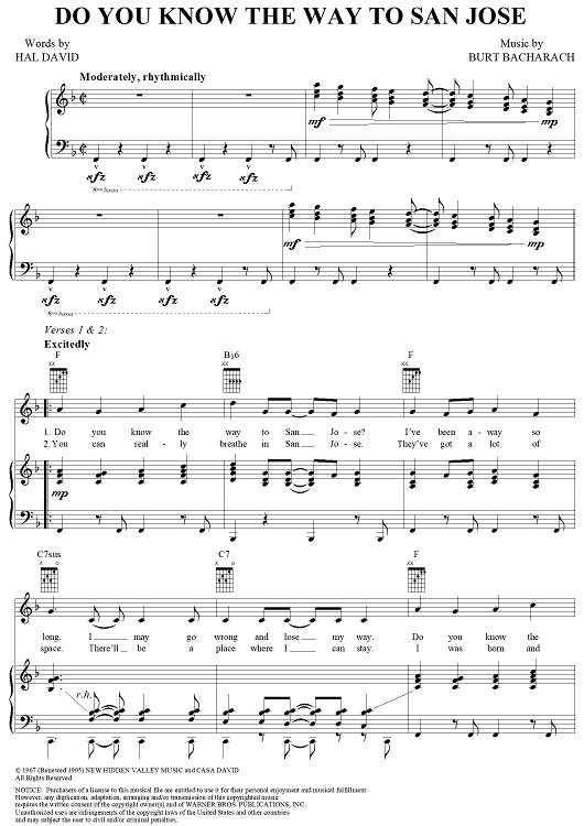 Digital Sheet Music for Do You Know the Way to San Jose by Burt Bacharach, Dionne Warwick scored for Piano/Vocal/Chords; id:287060