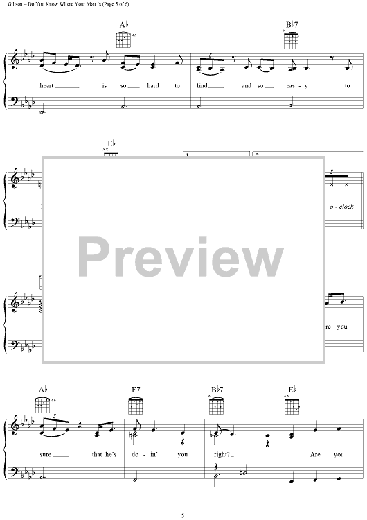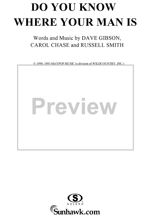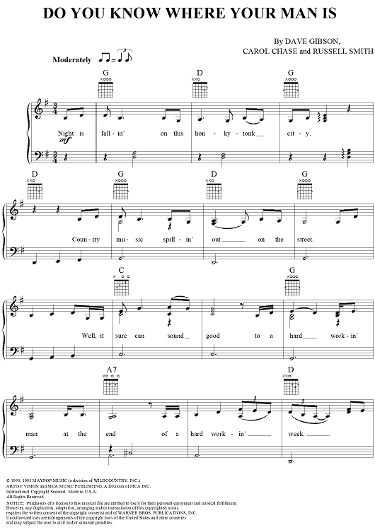 Digital Sheet Music for Do You Know Where Your Man Is by Dave Gibson, Carol Chase, Russell Smith, Pam Tillis scored for Piano/Vocal/Chords; id:124074