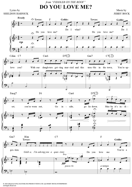 Digital Sheet Music for Do You Love Me? by Jerry Bock, Sheldon Harnick scored for Piano/Vocal/Chords; id:112855