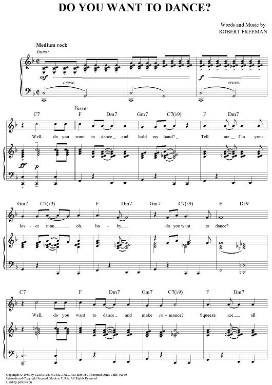 Digital Sheet Music for Do You Want to Dance? by Robert Freeman, Bette Midler scored for Piano/Vocal/Chords; id:363962