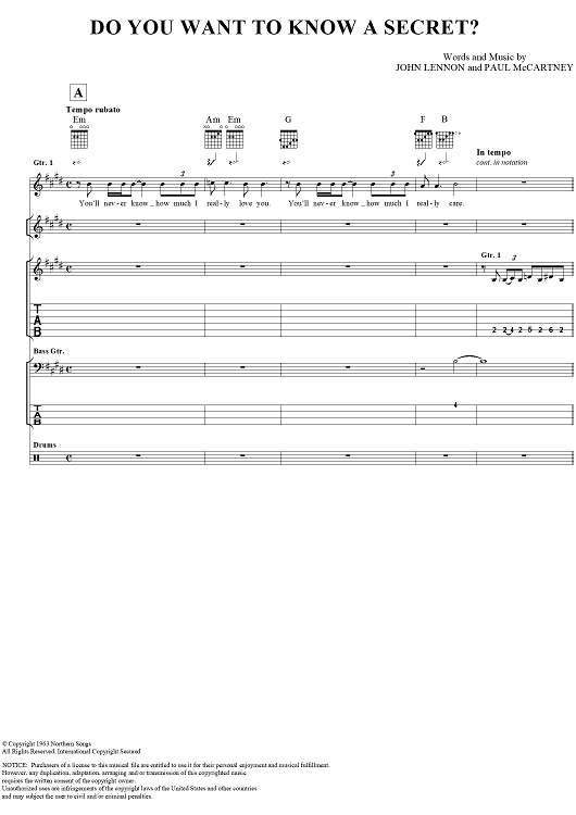 "Do You Want to Know a Secret?" Sheet Music by The Beatles