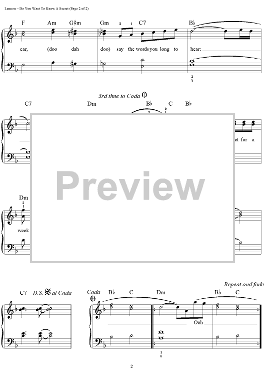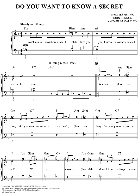 Digital Sheet Music for Do You Want to Know a Secret by Paul McCartney, The Beatles, John Lennon scored for Easy Piano/Vocal/Chords; id:449544