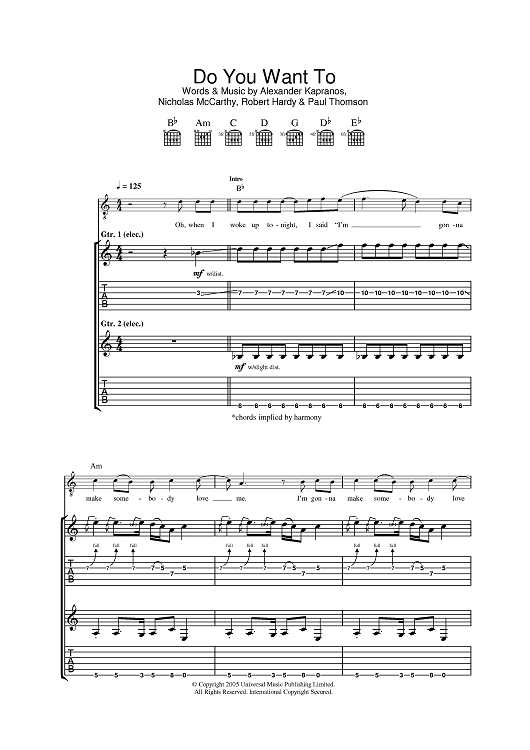 Digital Sheet Music for Do You Want To by Franz Ferdinand, Robert Hardy, Alexander Kapranos, Nicholas McCarthy, Paul Thomson scored for Guitar Tab; id:387171