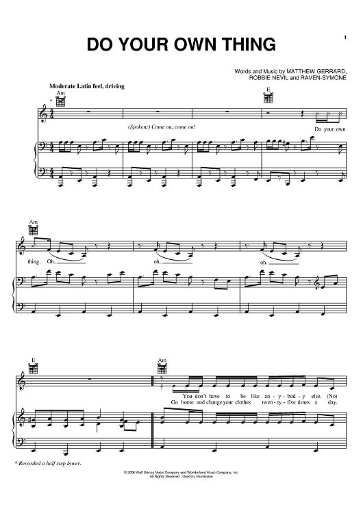 Digital Sheet Music for Do Your Own Thing by Matthew Gerrard, Robbie Nevil, Raven-Symoné scored for Piano/Vocal/Chords; id:394571