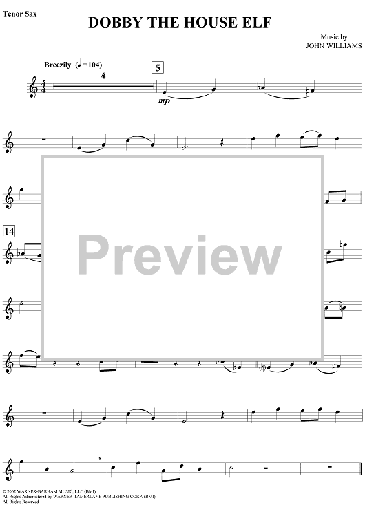 Digital Sheet Music for Dobby the House Elf by John Williams scored for Tenor Sax/Piano; id:317315
