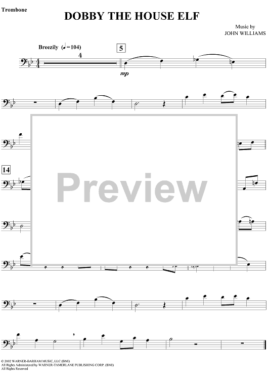 Digital Sheet Music for Dobby the House Elf by John Williams scored for Trombone/Piano; id:317348